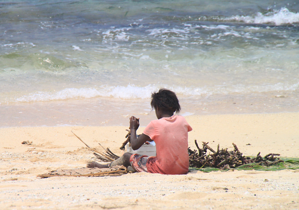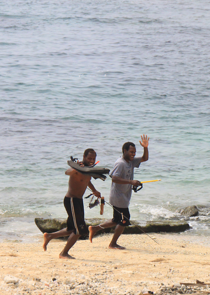 Долбленки допотопные, ходят все босиком, а вот снаряжение у островитян достаточно современное: маски, ласты, подводные ружья. Сети тоже есть, но на рыбу предпочитают охотиться с ружьем или хотя бы с гарпуном. И мужчины реально заняты этим значительную часть дня. На завалинке не сидят и не разлагаются, как в туристических деревнях за деньги.