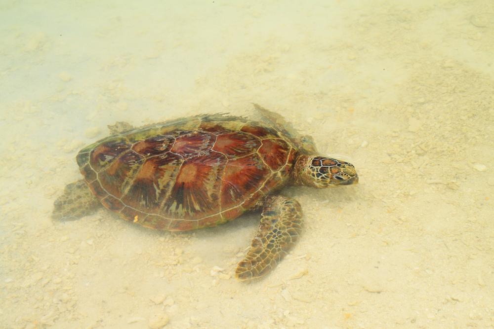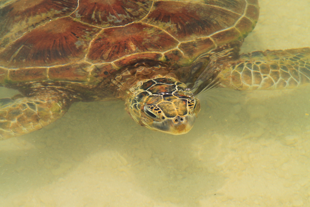 Черепахи замечательные и очень позитивные, нам всячески понравились. Но «купание с черепахами» — это все-таки преувеличение, бассейн неглубокий.