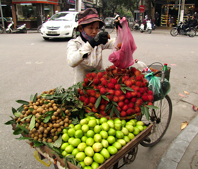Ели мы в разных местах, и в уличных «супных», и в туристических кафе подороже. Цены на туристическую еду и фрукты в Ханое по сравнению с остальным Вьетнамом высоковаты. Фрукты зимой везут из-под Сайгона или из Тая, оттого рамбутаны и манго стоят в среднем 50 кD за килограмм (2,5$, грабеж просто)