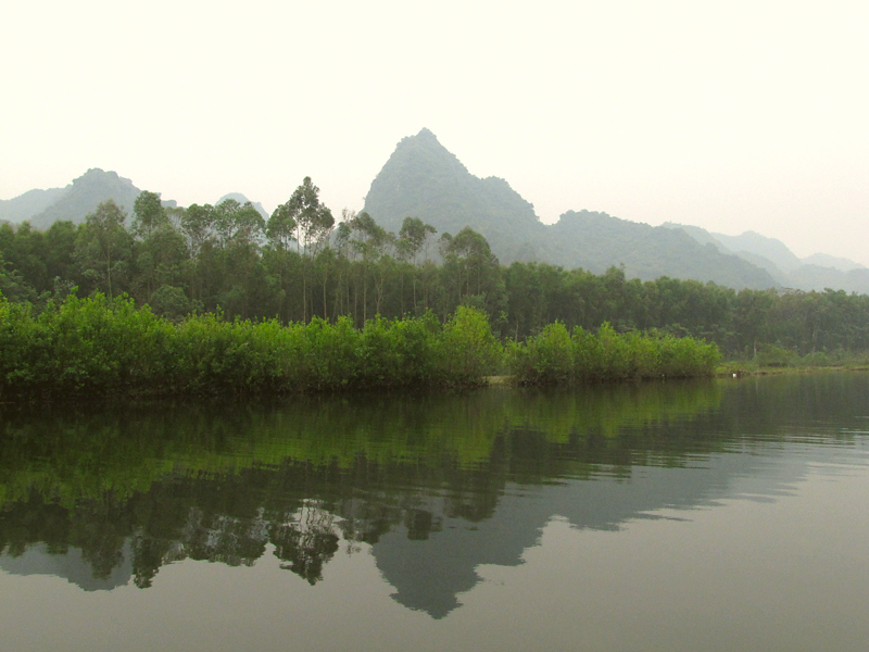 Такими мне и запомнились пригороды Ханоя зимой — туман и причудливые горы, много зелени и воды.