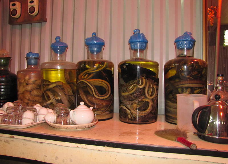 Собаки и змеи — местный специалитет. Но съесть собаку вьетнамцы иностранцам не предлагают, потому что знают нервное отношение к этому вопросу. А вот съесть змею или выпить змеиную настойку предлагают.