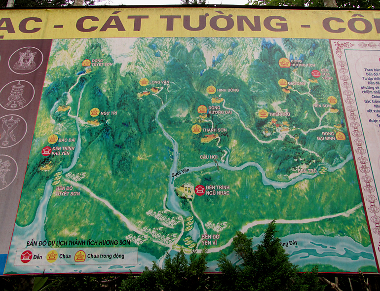 Оказывается, здесь есть еще много храмов, мы же были только в правой верхней части. На этой карте Ароматная пагода называется иначе, чем в путеводителях — Dong Huong Tich. Как тут особо самостоятельным обойтись без гида, вообще не понятно.