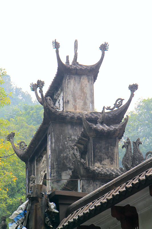 Сперва полезли наверх по ступеням в Ароматную пагоду. Туда можно доехать на канатной дороге, мы же предпочли погулять. Путь, правда, сильно испорчен многочисленными павильонами страшного вида, которые работают только в сезон, а в декабре закрыты. Они загораживают пейзаж.