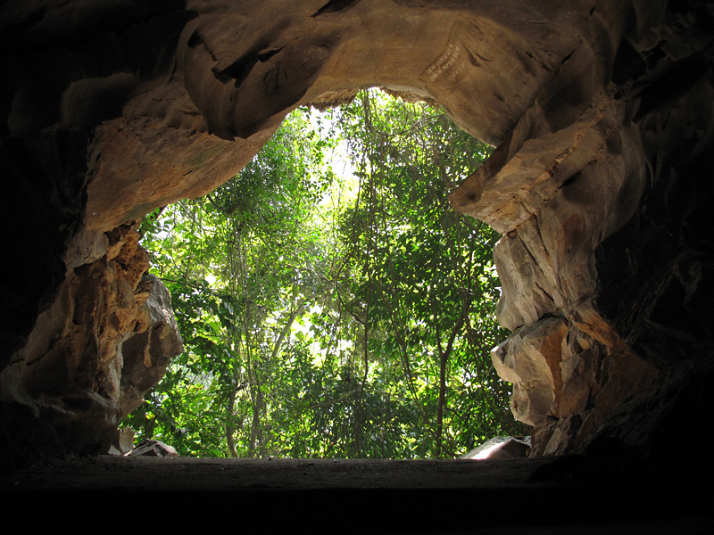 В лесу попалась небольшая пещера.