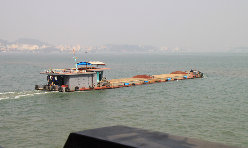 А это типичная вьетнамская баржа, загруженная так, что только башенка из воды торчит. Как она не тонет — осталось для меня загадкой.