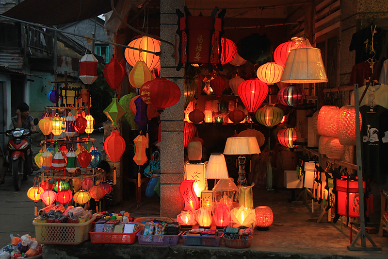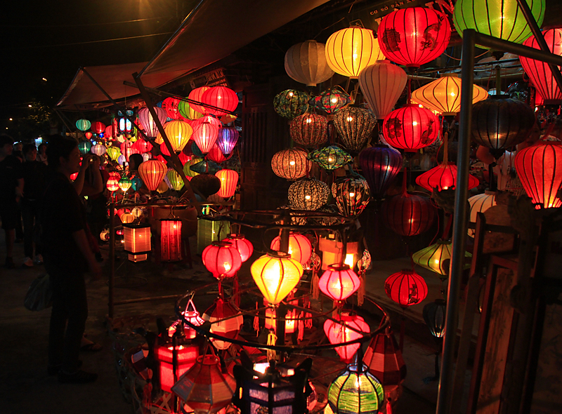 Меж тем настал вечер и мы пошли любоваться центром города. Хойан — это такой вьетнамский Суздаль, здесь сохранили старые дома, превратив многие из них в музеи. Про архитектуру я буду писать отдельно. Но главное впечатление от города вечером — фонарики.