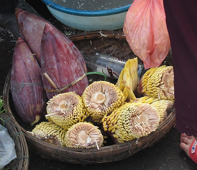 А это цветок банана, который считается овощем и очень хорош в сыром виде в разных салатах.