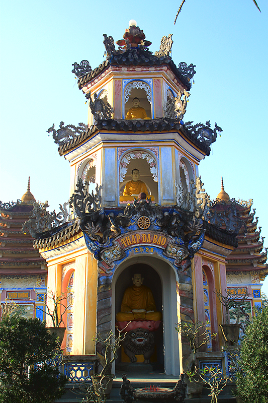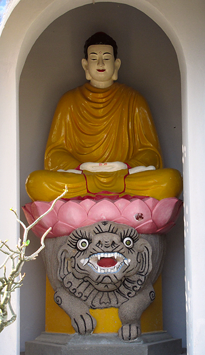 Внезапно я нашла не просто действующий, а очень сильный и активный храм. Или даже монастырь. Если из центра перейти по мосту на полуостров An Hoi и еще метров 200 пройти по улице, то храм будет справа. Алтарь там на втором этаже.