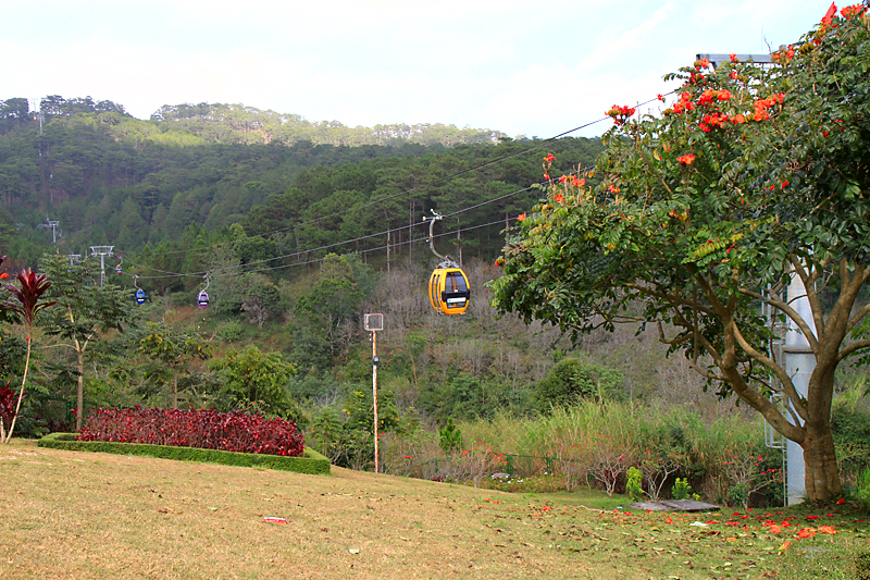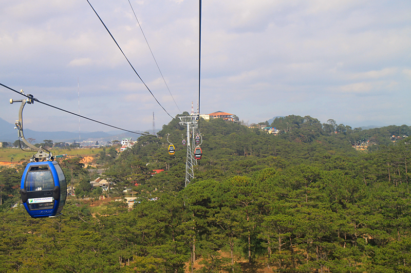 Меж тем канатная дорога снова заработала. Мы оставили байк у храма и отправились покататься. Ее протяженность — 2.3 км, поездка туда-обратно стоит 70 кД.