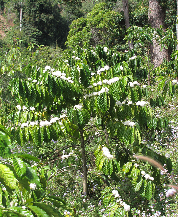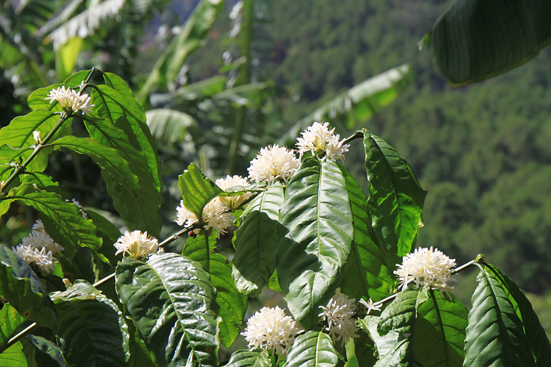 Деревья с ближайшей кофейной делянки были покрыты белыми цветами.