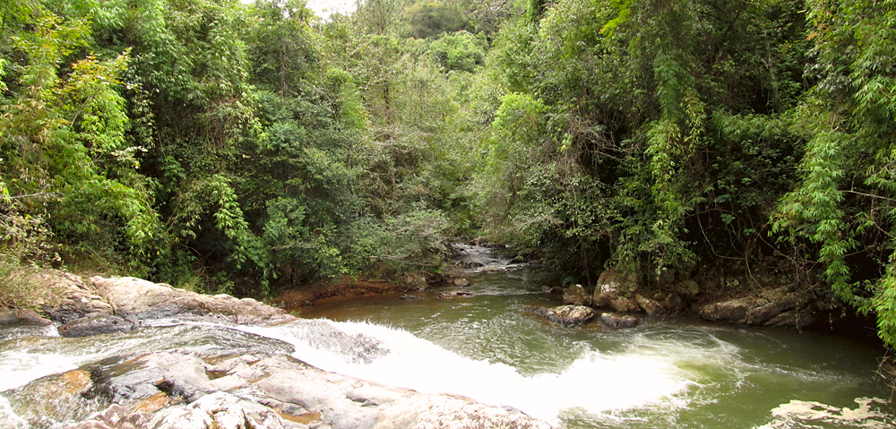 Следующий участок трека шел вдоль дороги, мимо домов и строек. Но это было недолго. Потому что мы дошли до реки, которая протекает по парку Датанла, нырнули на еле заметную в кустах тропинку, и снова оказались в джунглях.