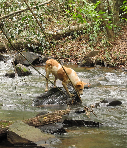 Собака героически преодолела две или три переправы, но очередное препятствие ее остановило.