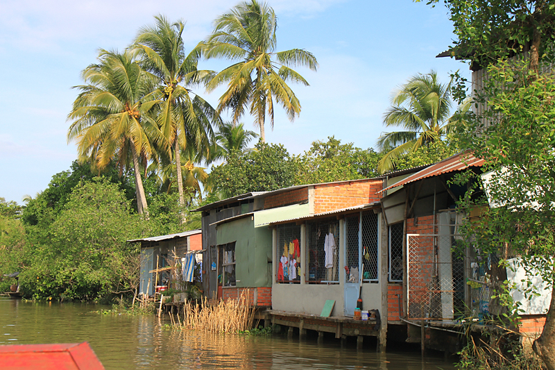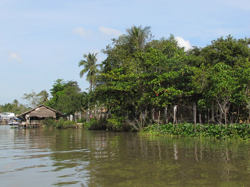 После посещения плавучего рынка вблизи Кантхо наш катер свернул из основного русла в протоки. Там прятались сады, мини-фабрики и просто жилые дома.