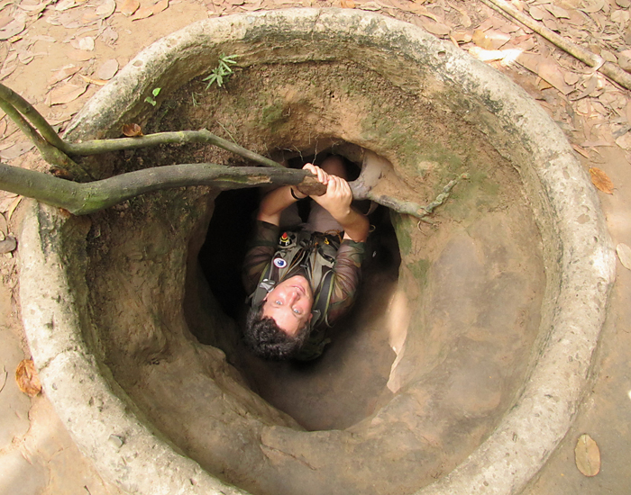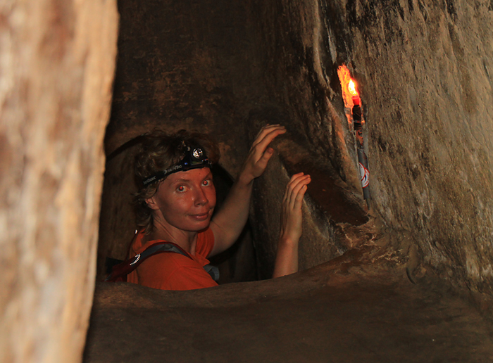И вот что я вам скажу. Кошмарно там внутри — очень жарко и воздуха нет, от этого реально плохо становится. Я не боюсь пещер, катакомб и тесного пространства. По нескольку дней жила в подмосковных катакомбах, была даже на одной из подземных игр. В Аджимушкае внутрь тоже залезала. У нас везде есть воздух и холодно, и трудно представить, насколько же это хорошо по сравнению с вьетнамскими туннелями. Нет, мы проползли до конца, конечно (одни из немногих), но голову сжало железным обручем от нехватки кислорода, и она потом долго болела. Не знаю, как они там выжили. В Аджимушкае вот все погибли, 10 тысяч бойцов, совершенно самурайская история была.