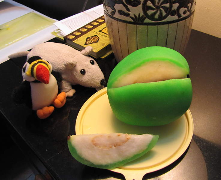 Вообще-то я ее видела раньше, но в Индии это была невзрачного вида невкусная бугристая груша, а в Тае гуава продается в нарезанном виде и тоже успеха как-то не имела.