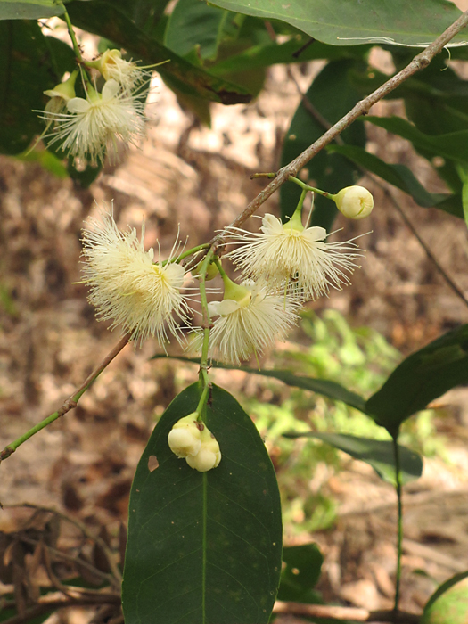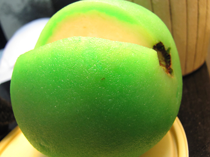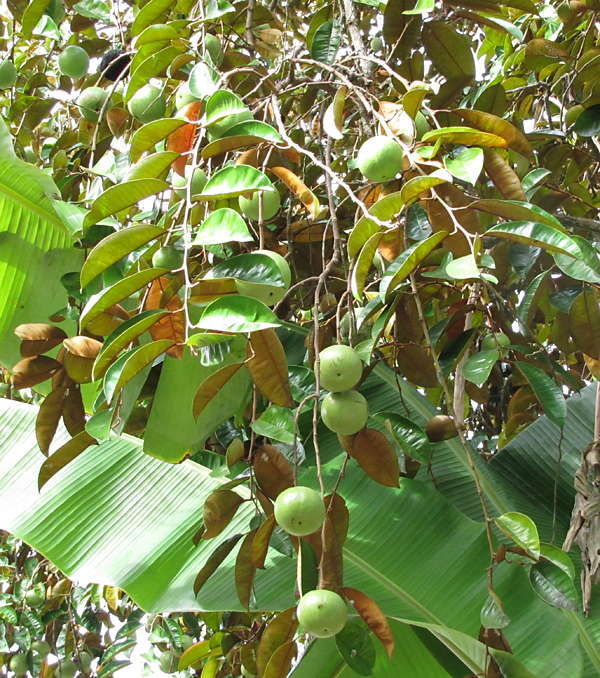 Он похож отдаленно на зеленый мангостин, которому не дали созреть. Я ела такой в Камбодже, но там он хотя бы стал фиолетовым. И крепление к ветке у них, кажется, разное. Если кто знает фрукт по имени, просветите.