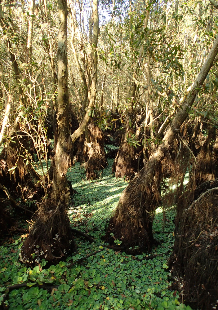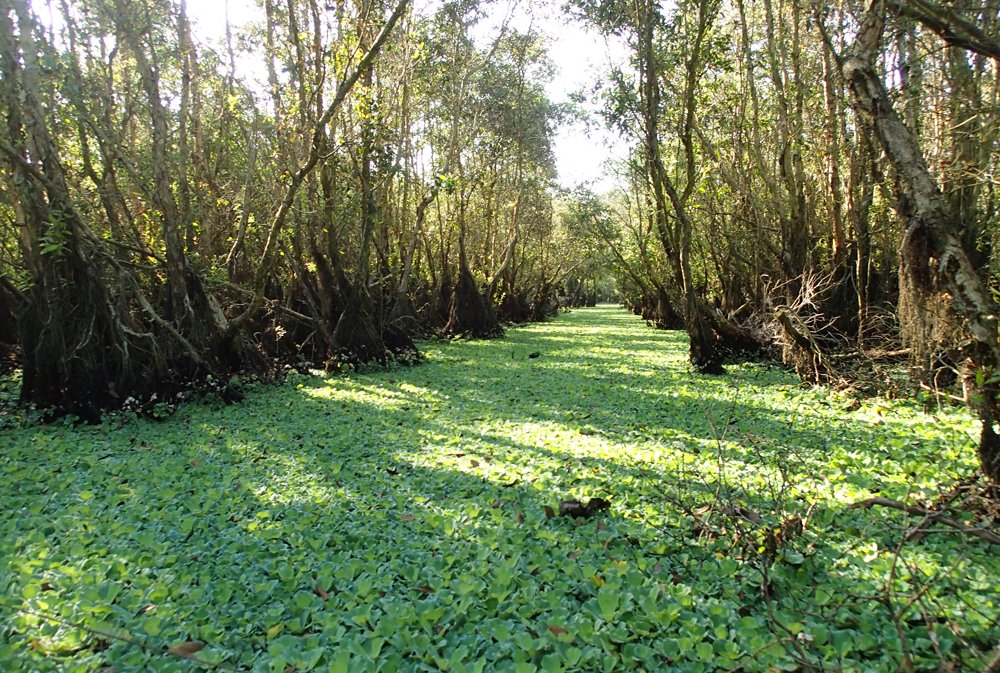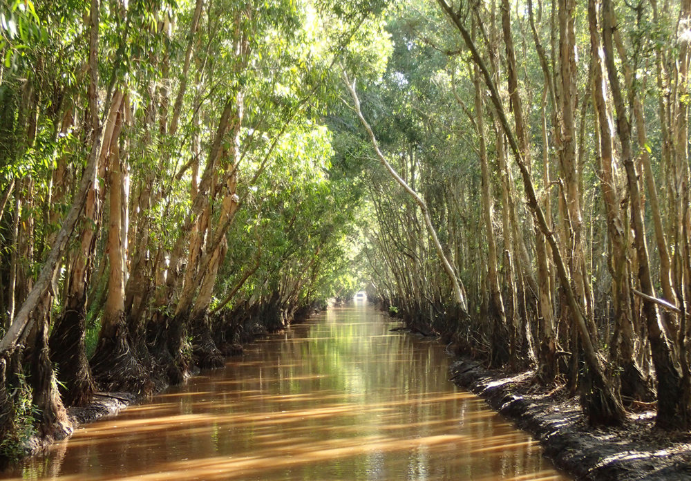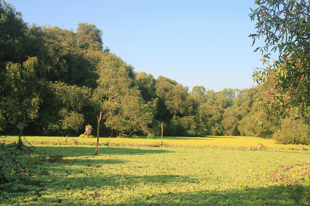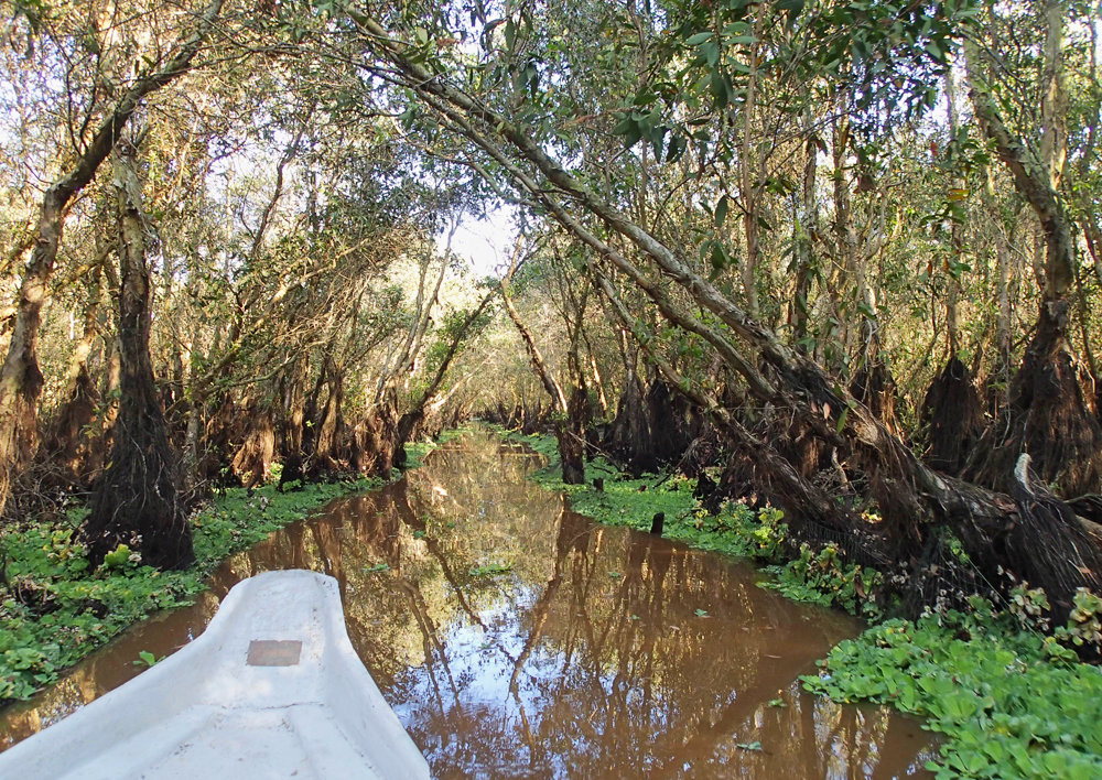 Этот чудесный лес, залитый водой, находится в дельте Меконга, во Вьетнаме. Ближайший город — Chau Doc. В этот лес не ступала нога лонлиплэнета. А если бы ступила, то утонула: тут можно передвигаться лишь на лодке. Лес даже не является нацпарком, хотя живность в нем охраняют и не обижают. В лесу сделали лодочные маршруты для местных туристов; они приезжают полюбоваться очень своеобразным пейзажем и посмотреть на множество ярких и красивых птиц. Райцентр Chau Doc находится близко от камбоджийской границы и далеко от Сайгона, поэтому редкий турист доплывет до Tra Su. Мы вот попали туда случайно.