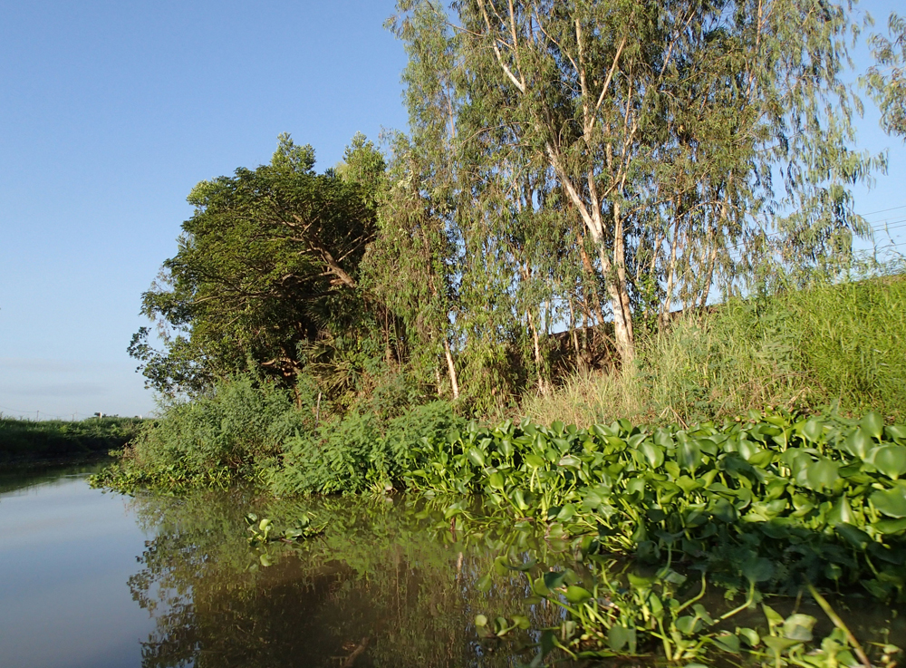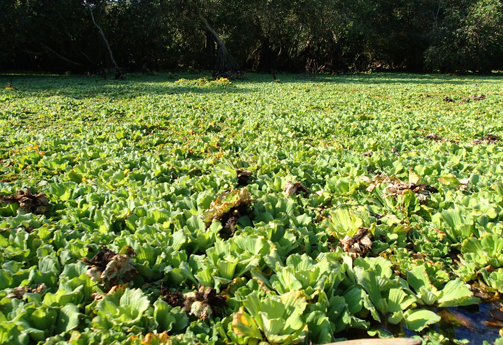 Для лодок оставляют открытую воду, размещая в воде сетки, удерживающие растения. Где сеток нет, канал выглядит так: