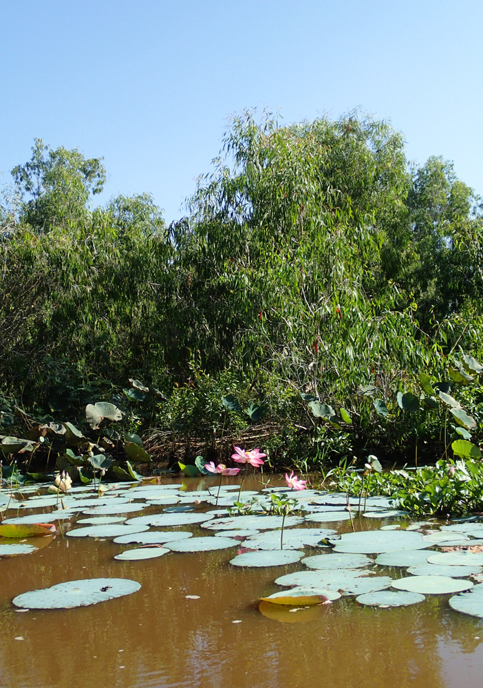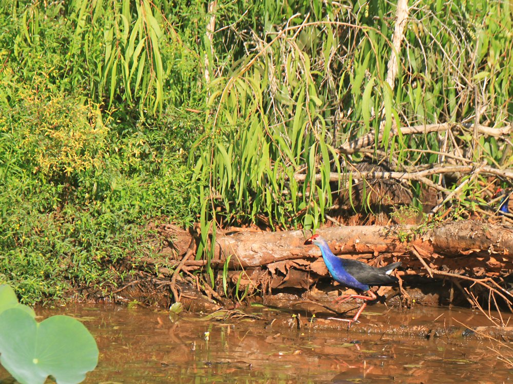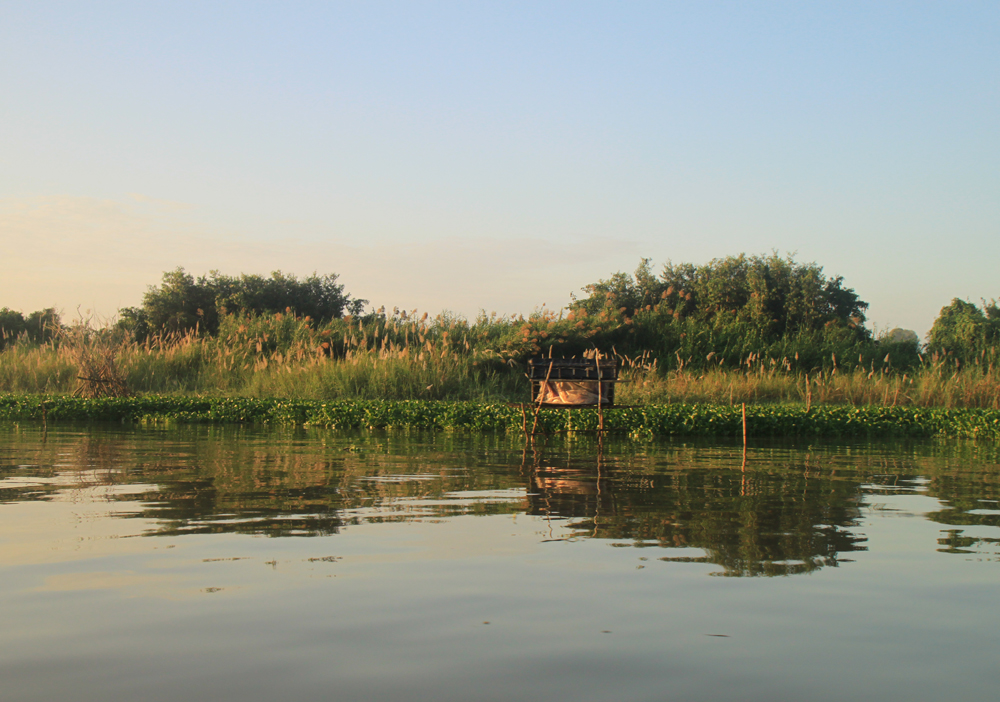 Первый этап — маленькая лодка с мотором, которая едет сперва через заросли лотосов, а потом по протокам, где живет множество птиц.