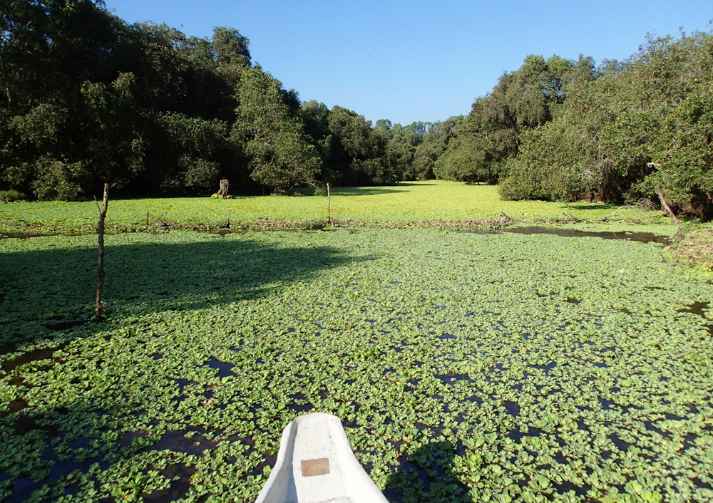 Далее лодка остается на пристани в канале, люди переходят по мосту и попадают, собственно, в лес Tra Su. Для добирающихся самостоятельно тут есть кассы с билетами (цену не знаем, у нас она входила в экскурсию), а далее водная прогулка по лесу разбита на три этапа.