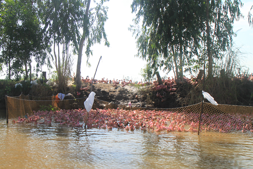 Местные жители разводят уток. Покрасили своих в розовый цвет, пометив таким образом:
