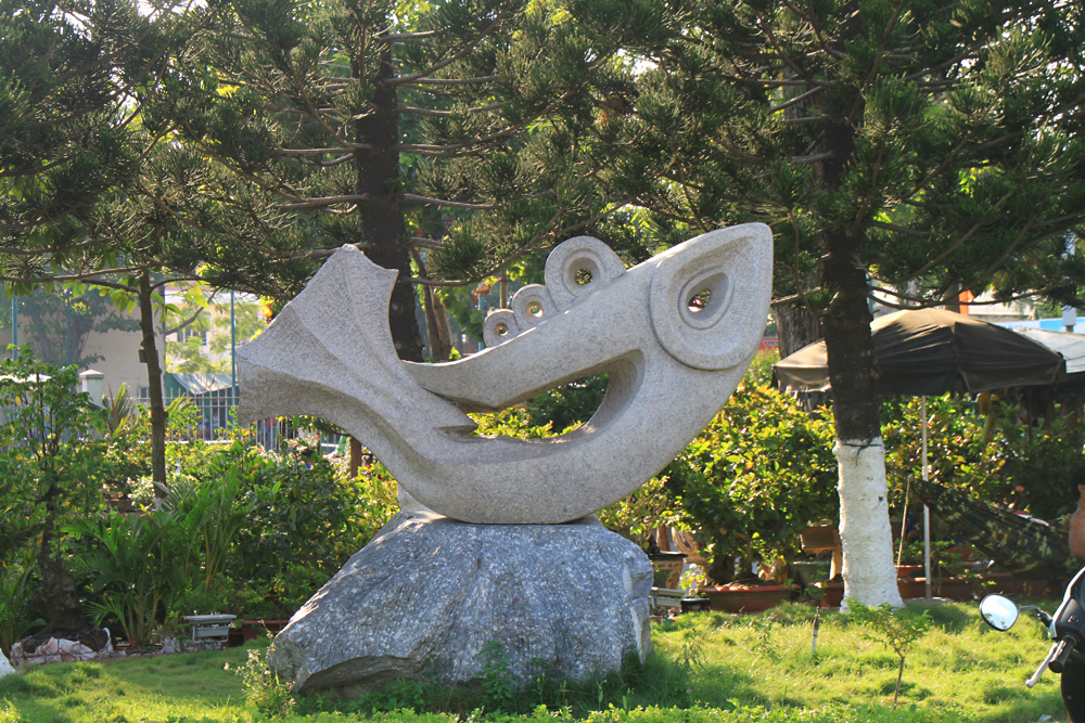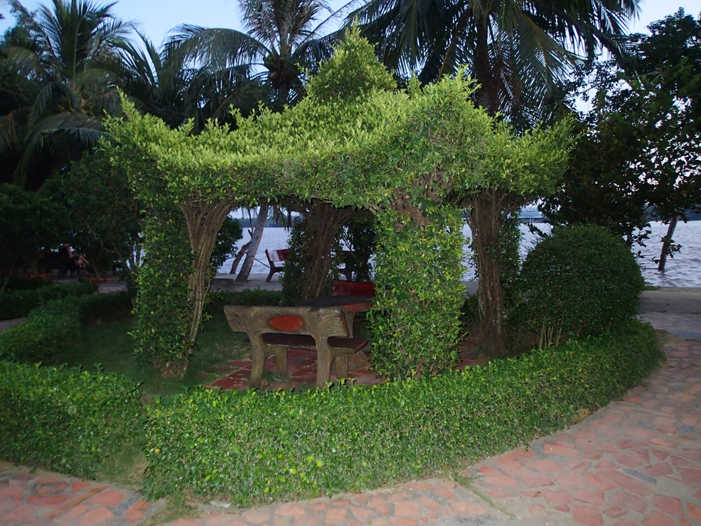 Самого храма на острове как такового мы не видели. Это какие-то местные верования, которыми славен Вьетнам (тут есть и каодаизм, и другие секты). Но видели красивый сад с бонсаи и скульптурами символического содержания, уже закрытый вечером ресторан и что-то типа паломнической гостиницы.