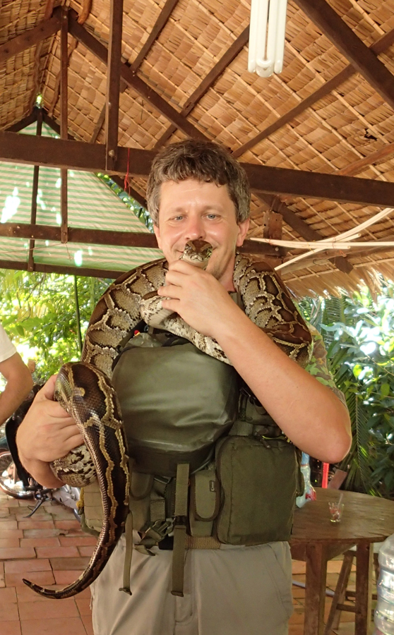 Тут же выдают питона для общения и фотографий. Потрогать питона мы любим.