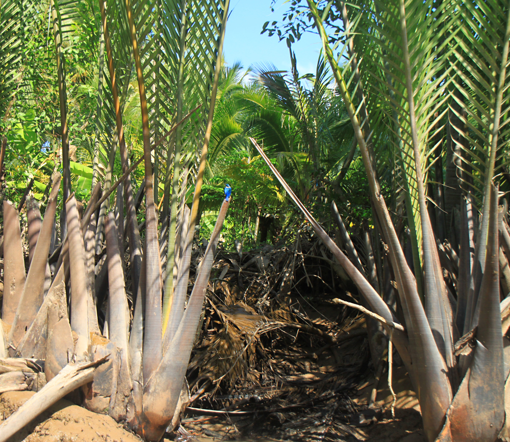 Дома мы отдохнули пару часов, поели фруктов, а потом поехали на следующую водную экскурсию. Она индивидуальная (400 тысяч донг за двоих) и возможна только для тех, кто останавливается в Ми Тхо на ночь. Сперва везут на остров Феникса к кокосовому храму, а потом, после заката, к особым зарослям, где живут светлячки.