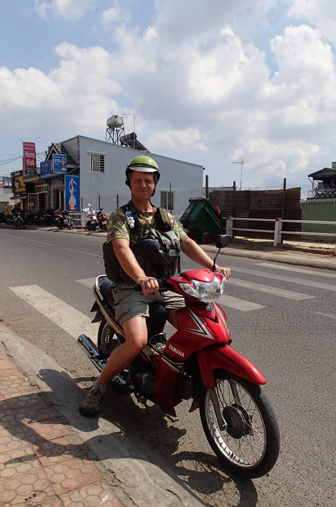 Выселившись из Безумного дома, следующие два дня мы жили в отельчике Ле Фуонг (Nguyen Chi Thanh, 84). Наш прошлый отель Чау-Ау Европа, расположенный по соседству, был на ремонте. Ле Фуонг очень чистый и симпатичный (350 тысяч донг или 16$). В нем мы взяли в прокат мотоцикл, лихую красную Ямаху (120 кдонг в день), у которой внезапно работало все. Одна проблема: она была полуавтомат. Если скутер-табуретку даже я могу водить, то Ямахой я управлять даже не пыталась. Так что водил Ран, а мне настало время бояться.