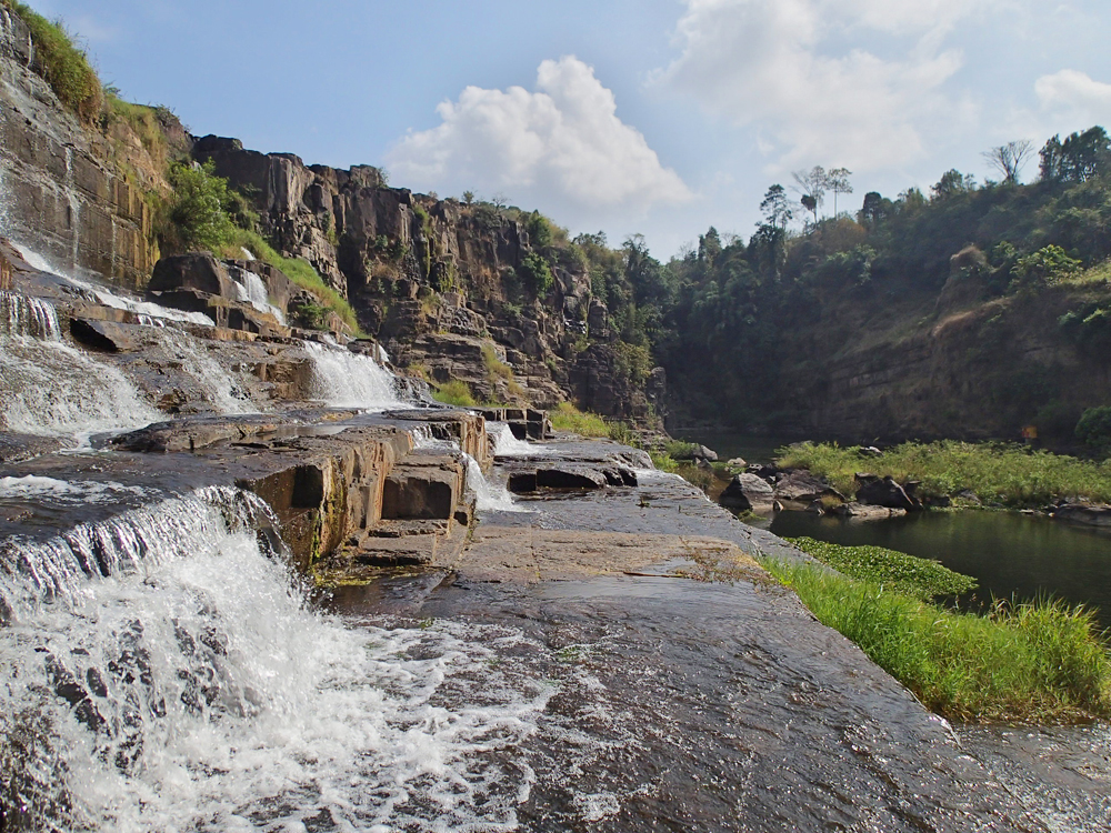 Территория вокруг водопадов находится в странном состоянии: водопады обустроили, дорожки окультурили, поставили кассу на входе, а потом забросили все это дело. То есть кассир имеется, и даже денежку собирает (10 кдонг за вход и 5 кд за парковку), но народа нет или почти нет. Никакого организованного туризма, только такие же самостоятельные добираются, как мы.