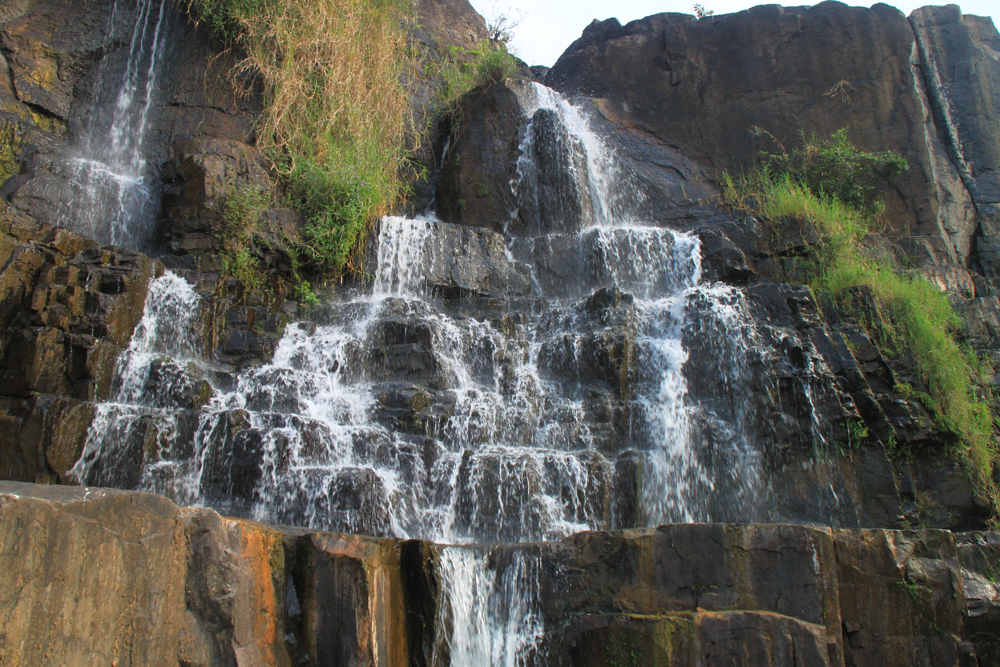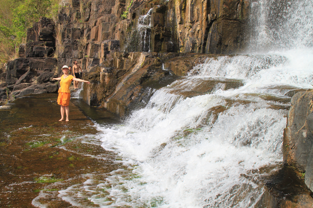 Водопад интересен тем, что у него много каскадов и по ним можно лазить. Вода падает по ровным уступам.