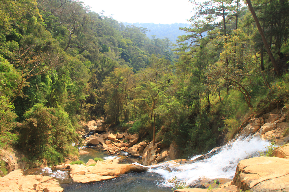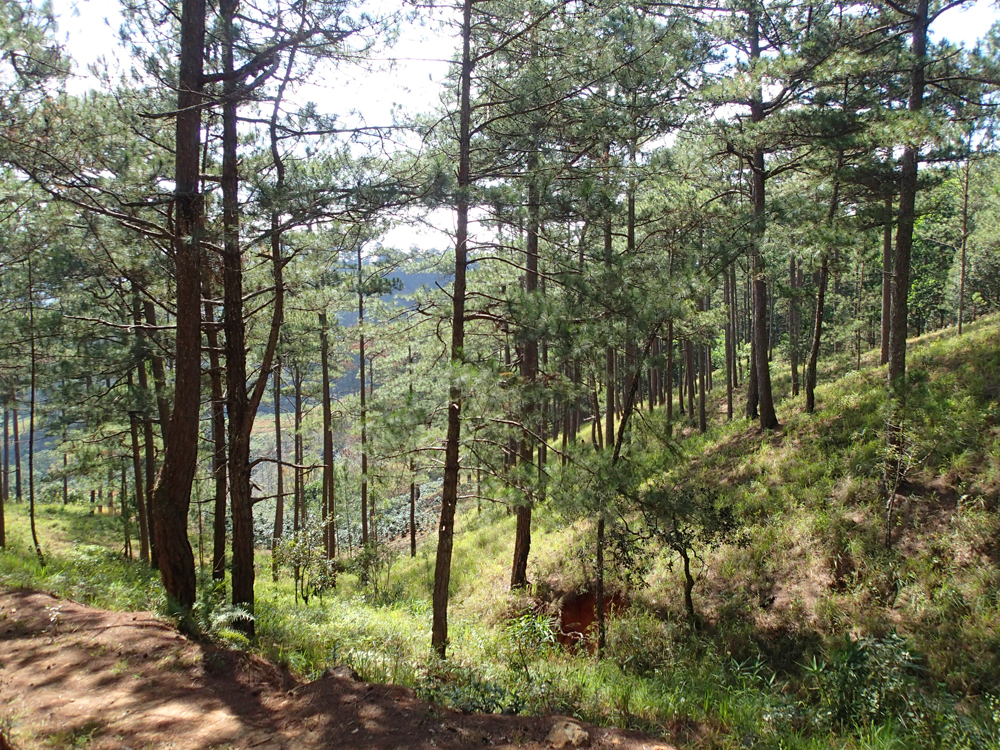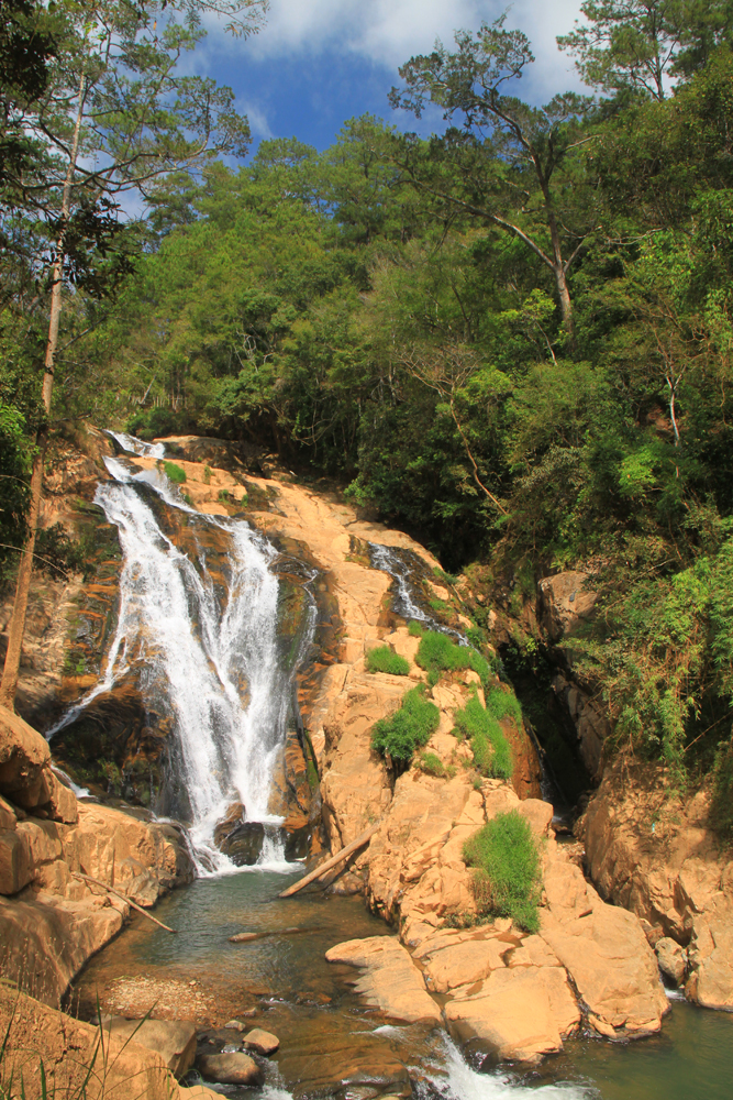На следующий день мы ездили к Тигровому водопаду. Пять лет назад мы его просто не нашли, кружили возле деревни Trai Mat по полям и дорожкам. Сейчас мы вооружились собственноручно нарисованными треками. Последняя часть пути сложная, узкий горный серпаниин, местами без покрытия, с камнями и ухабами. Но вокруг красивый сосновый лес.