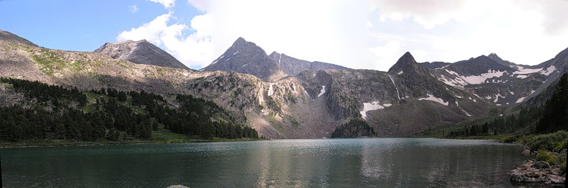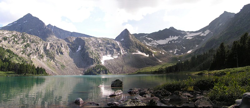 Вот почему у воды такой цвет? Он в этом озере не зависит от наличия или отсутствия солнца. Из химических веществ мы вспомнили только медный купорос с похожим оттенком, но вода на вкус очень даже хороша. Кстати, на Алтае, как и в Хибинах, можно пить воду из любого источника, ничего не опасаясь:
