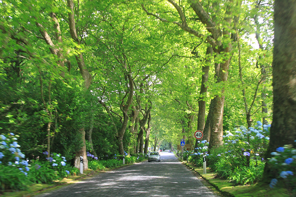 Утро было хорошим и мы было сунулись к кратеру Сете Сидадеш в центре острова. Виды на семь озер — основная фишка Сан-Мигеля, но нам пришлось их ждать несколько дней. А пока там стоял плотный туман, надежды в этот день не оправдались.