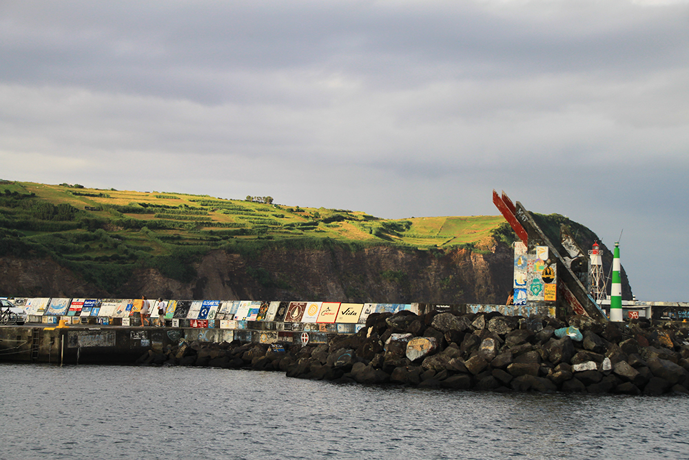 На пирсах и на стенах марины экипажи парусных судов по прибытию в Орту традиционно оставляют рисунки.
