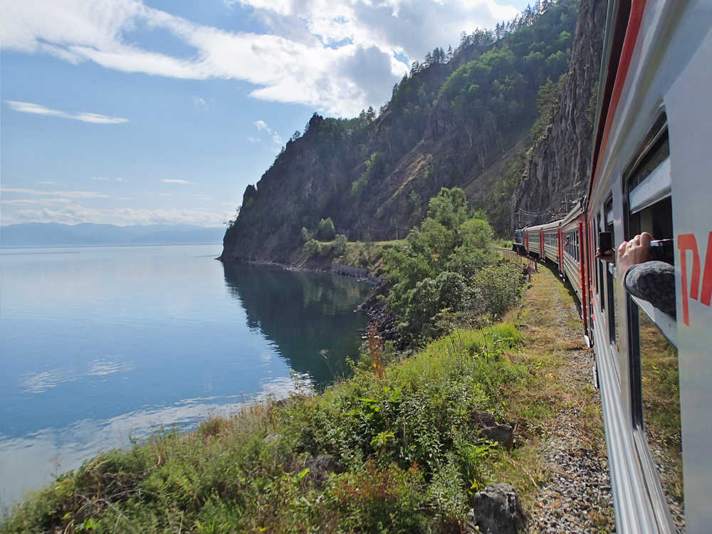После большой остановки мы нашли наиболее интересное место в поезде, пустой вагон №4. Оказывается, к экскурсионному составу цепляют вагон 3-го класса, то есть просто вагон электрички, но билетов на него экскурсантам не продают. Он вроде как должен быть для местных, но мы там местных не видели. И вот в этом пустом вагоне тихо, много воздуха, нет телевизора, никто не пахнет едой... не орут дети, китайцы не едят свою лапшу... просто праздник какой-то. Всю оставшуюся дорогу до Слюдянки мы стояли там у открытых окон и фотографировали.
