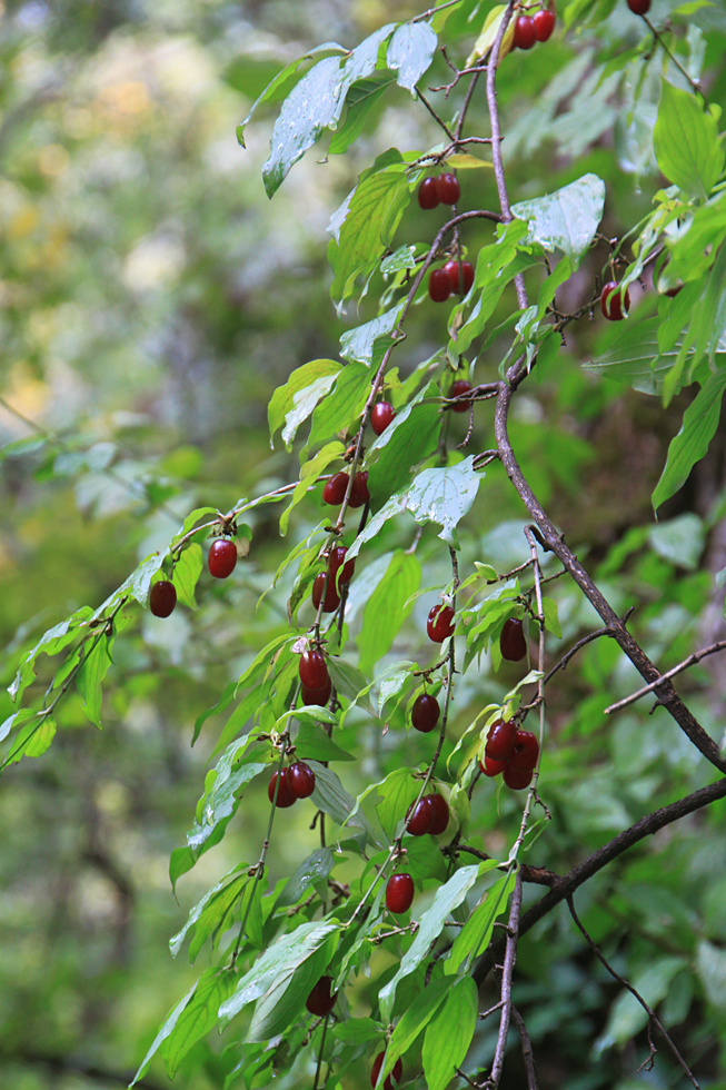 В лесу рос кизил. Вот так он выглядит на ветке.