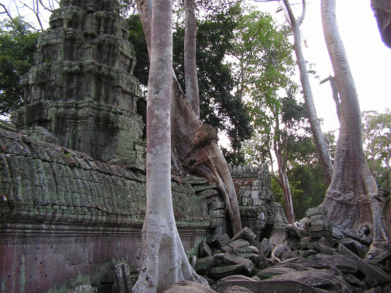 Этот храм не стали очищать от деревьев. А поскольку он не был сильно разрушен, то такое тесное переплетение природы и архитектуры смотрится потрясающе. Храм очень известен и попадает в малый туристический круг, маршрут, который можно успеть за день. Поэтому народ там есть. Сколько еще лет храм продержится, непонятно: здания взламываются корнями, а деревья, выросшие в камне, сохнут. Поэтому камбоджийцы совместно с индусами будут его реставрировать и это означает - смотреть надо быстро, пока не спилили половину красоты.