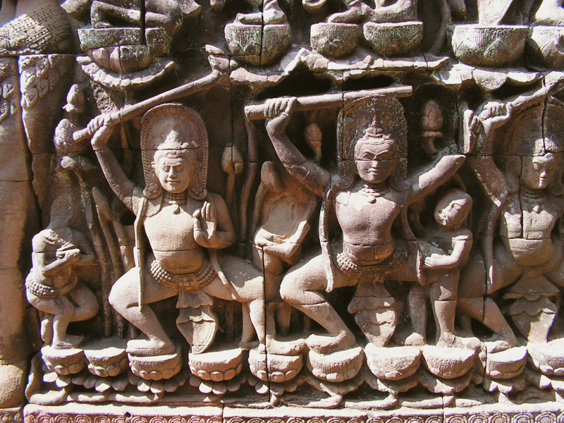 А вот тут рядом с воротами Ангкор Тома я попыталась заснять две команды. Получилось частично - фрагменты змеев и команд не сохранились.