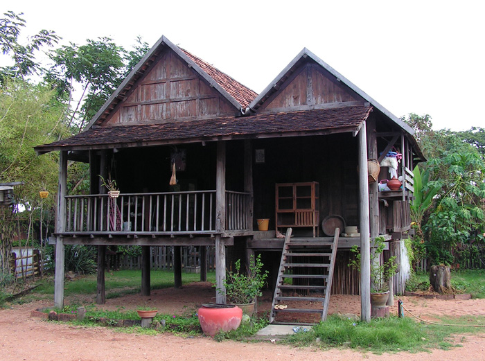 Сельскую кхмерскую жизнь я видела мало, только в первый день и с седла мотоцикла. Но вообще деревенские дома совершенно не создают ощущения экзотики. Они из дерева, прямоугольные, и отличаются от наших домов и дач лишь отсутствием фундамента: дома стоят на столбах. В жару под домом можно найти спасительную тень, а в сезон дождей дом не уплывет. Вместо яблонь пальмы, вместо кукурузы - бананы, а так очень домашняя обстановка. Типичный сельский дом.