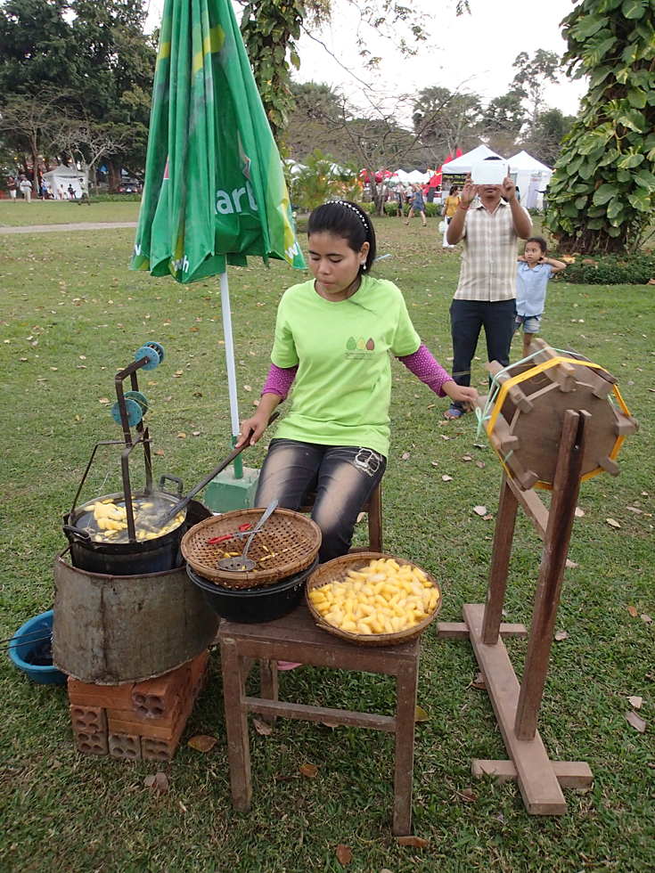 Основные товары на ярмарке — всякие поделки из ткани и дерева, местный шелк, пряности, варенье, местная косметика. Мы себе купили кампотского перца, отменный черный перец, очень душистый. Здесь его в блюда добавляют еще зеленым, прямо гроздьями. Особенно хорош с морепродуктами.