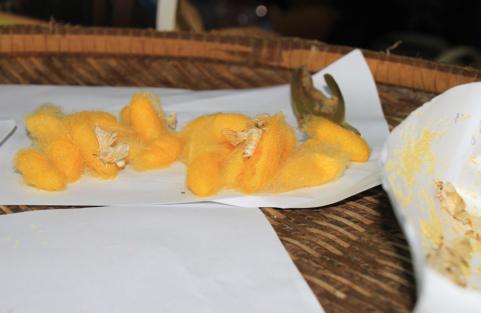 Когда собралось достаточно народа, она предложила закусить и окружающим. На глаза ей попался Ран и она протянула ему гусеницу. Народ притих. Ран с каменным лицом продегустировал гусеницу. На мой вопрос «ну? ну как?» ответил, что эта гораздо вкуснее тех жареных бамбуковых гусениц, которые мы ели возле Ват Ронг Кхун. Ну, тут и я потребовала дегустации, и действительно — очень даже вкусно. Похоже на нежную вареную кукурузу. Хотя сперва несешь ее ко рту и... хм... сомневаешься...