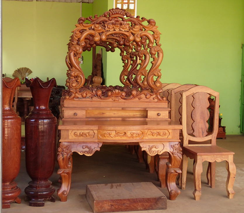 А это кхмерская традиционная мебель. Ее можно встретить по всей стране, она монолитна, внушительна и натуральна.