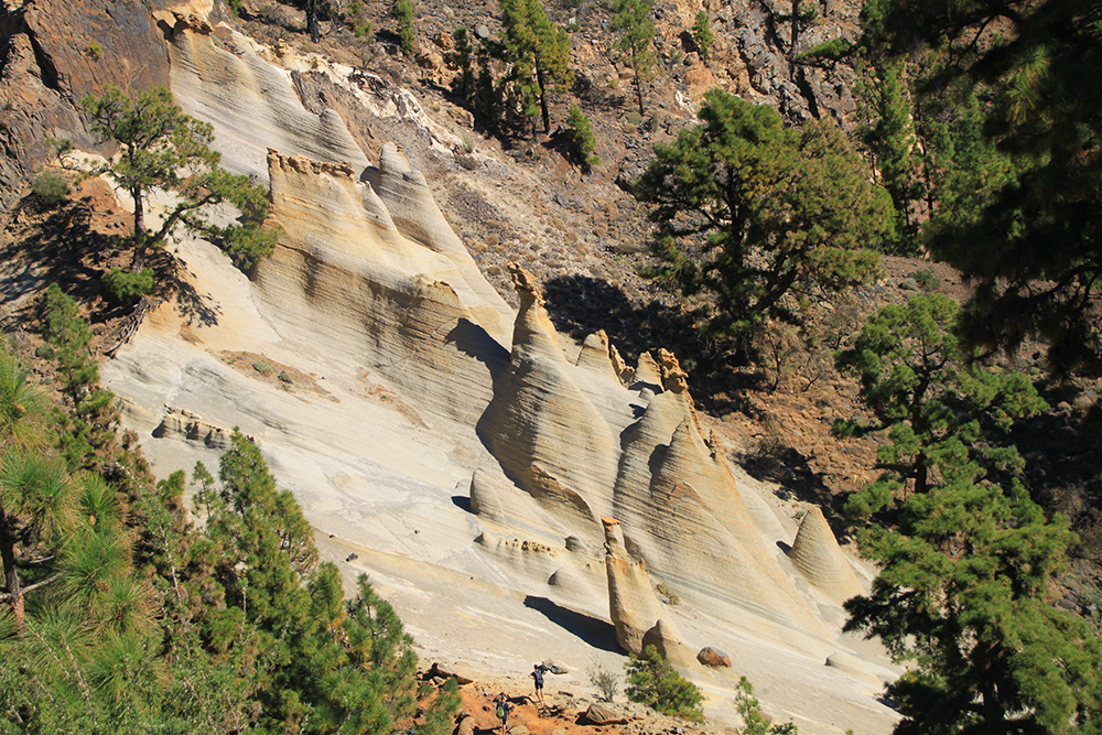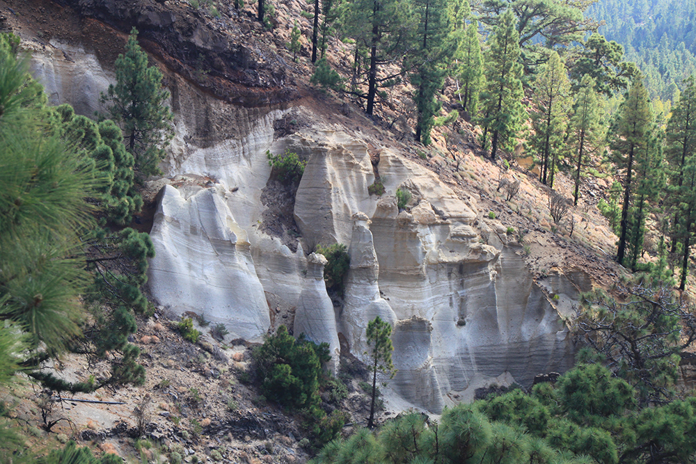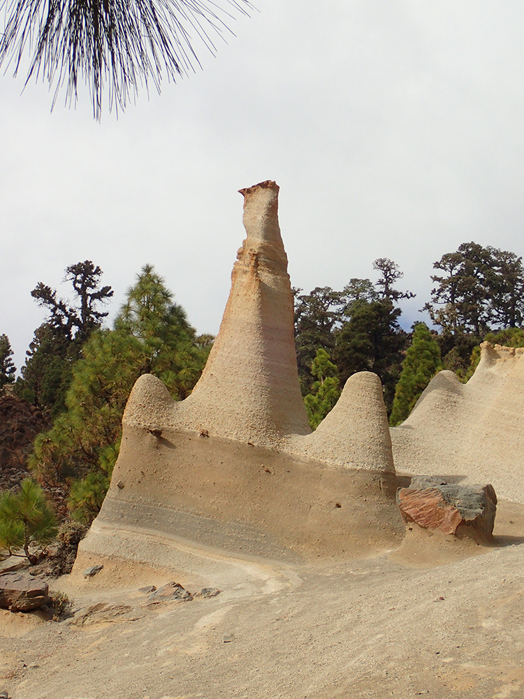 И самое интересное — новые побеги могут расти из любого места ствола. Благодаря этой особенности эти деревья, наверное, и способны восстанавливаться после пожаров. Загадкой остается, как канарские сосны растут в таких сухих местах на лавовых почвах.