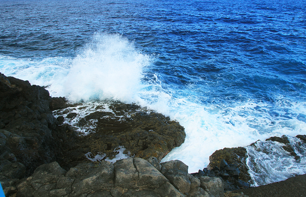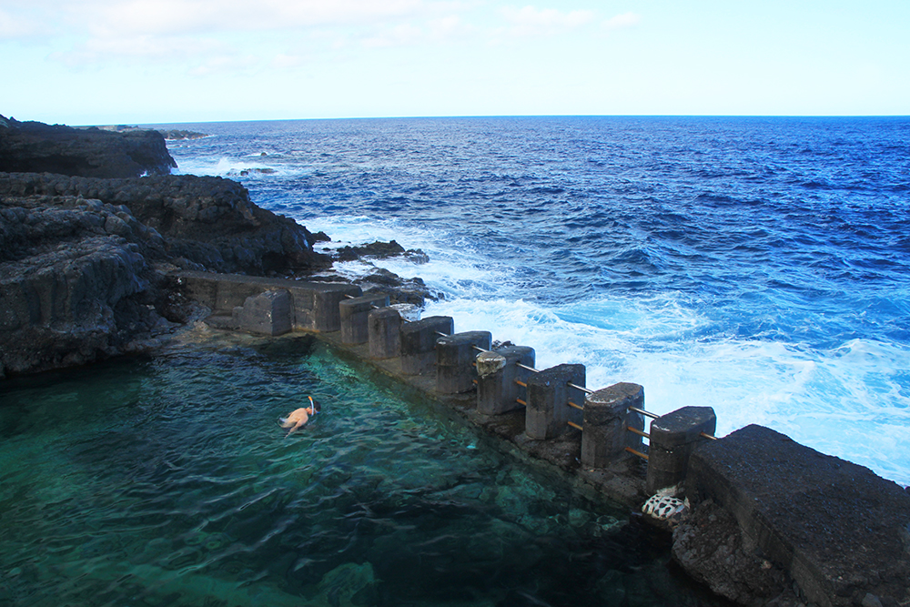 Charco Azul — типичный для островов лавовый бассейн, граничащий с океаном, но поднятый над ним.