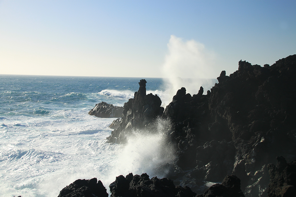Человек такой зашел по колено, и думает — успел ли он завещание написать? Мы даже не стали пробовать, вокруг острые лавовые выходы, купаться тут можно только при тихой погоде.