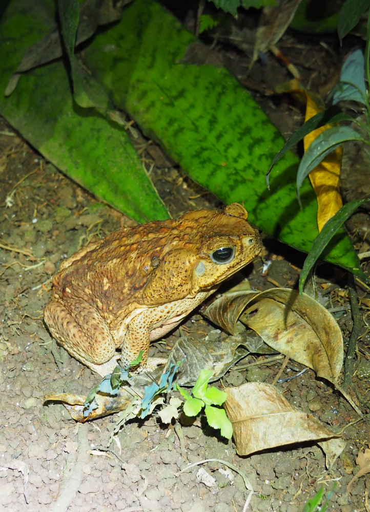Напоследок, уже на дорожке отеля нам показали толстую грустную жабу ага (Rhinella marina):