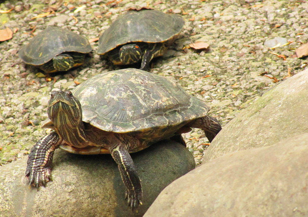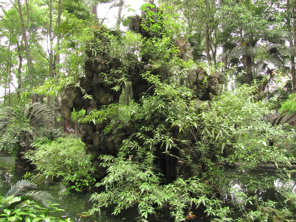 Вот тут они усажены бамбуком и стоят в воде, как положено.