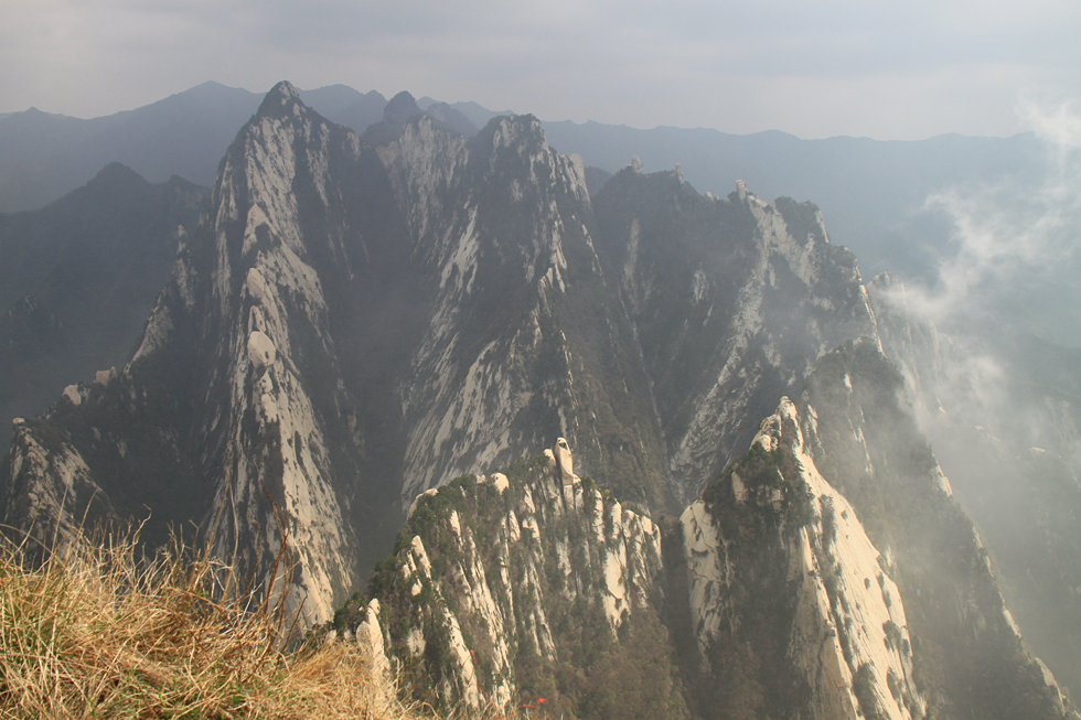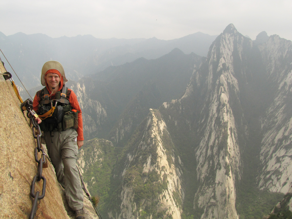Утром наш поезд приехал из Сианя на станцию Хуашань, мы сдали рюкзаки на хранение в ближайший к вокзалу магазин и поехали к горному массиву. Юля проводила нас до фуникулера, а дальше мы скакали по горам сами.