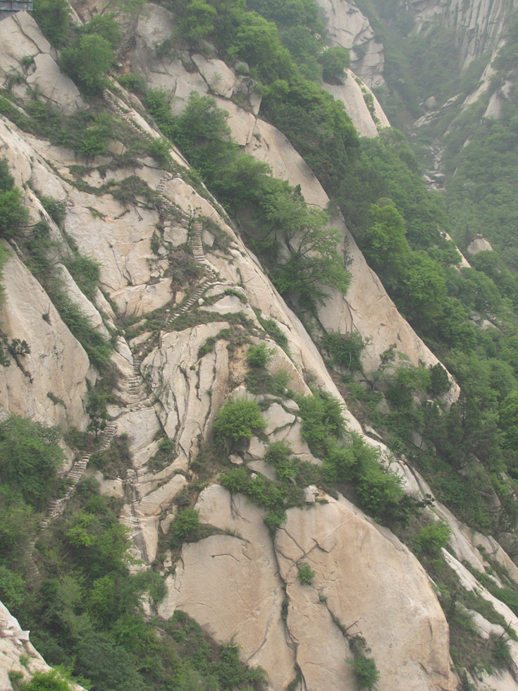 Издавна тут жили и строили свои храмы даосы. Храмы остались до сих пор, хотя сейчас медитативного уединения даосам ждать не приходится. По вырубленным в скалах лестницам снуют китайские туристы.